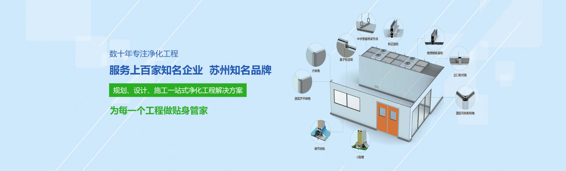 公司主營(yíng)新型凈化板材、門(mén)窗及配套產(chǎn)品,并提供從設(shè)計(jì)、施工到維護(hù)的一站式解決方案。